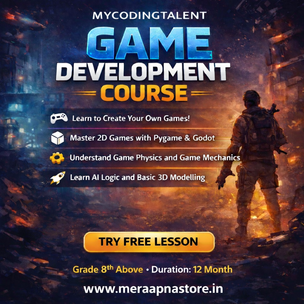 • Mycodingtalent -Game Development Course for Kids (Grade 8+) – Learn Coding, AI & 2D Game Design.